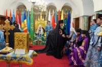Избранные к архиерейскому служению священнослужители обратились к Святейшему Патриарху Кириллу и сослужившим Его Святейшеству архипастырям со ставленническими словами.