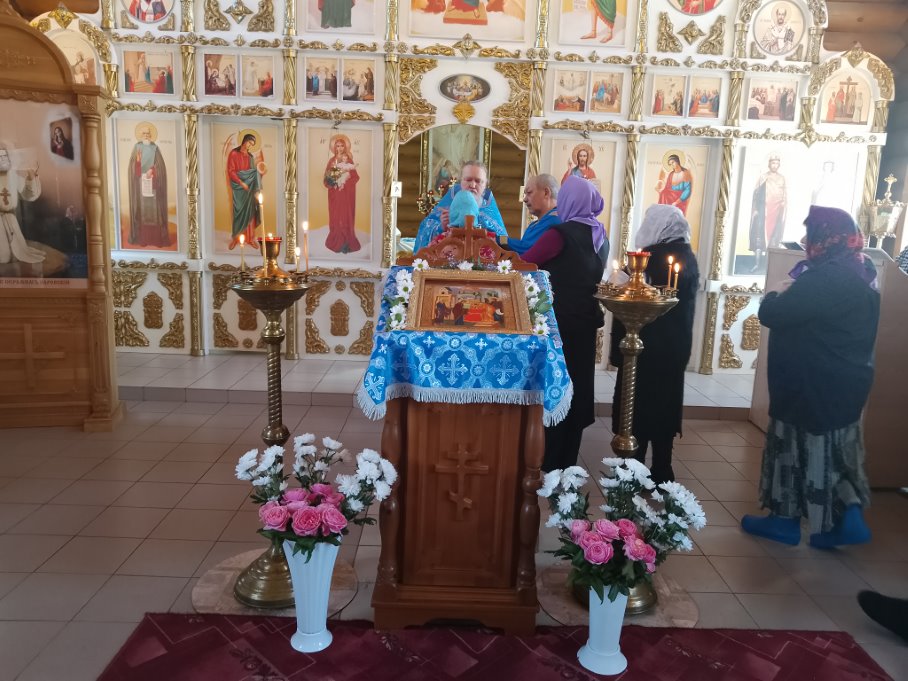 В день памяти святой Ксении Петербургской совершили молебен перед иконой, которую в 2020 г. передала в дар Баганскому храму приснопоминаемая игумения матушка Варвара (Герасимова).