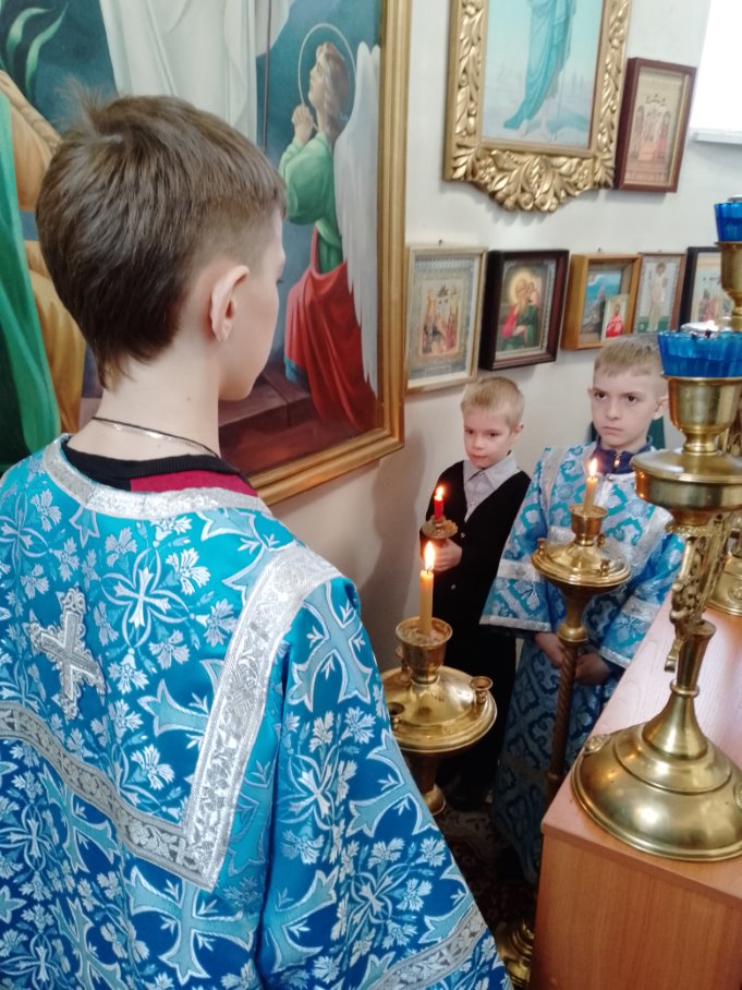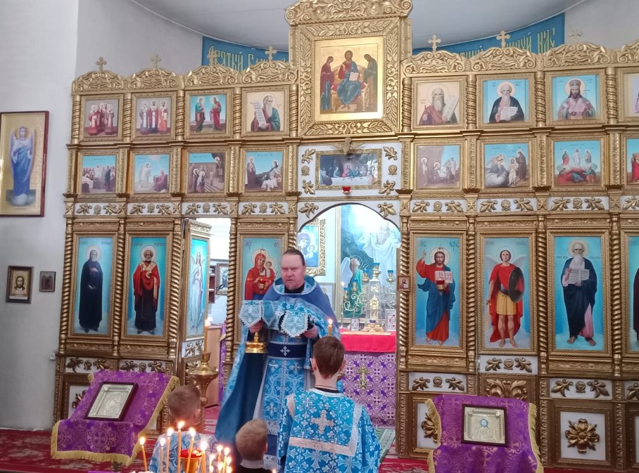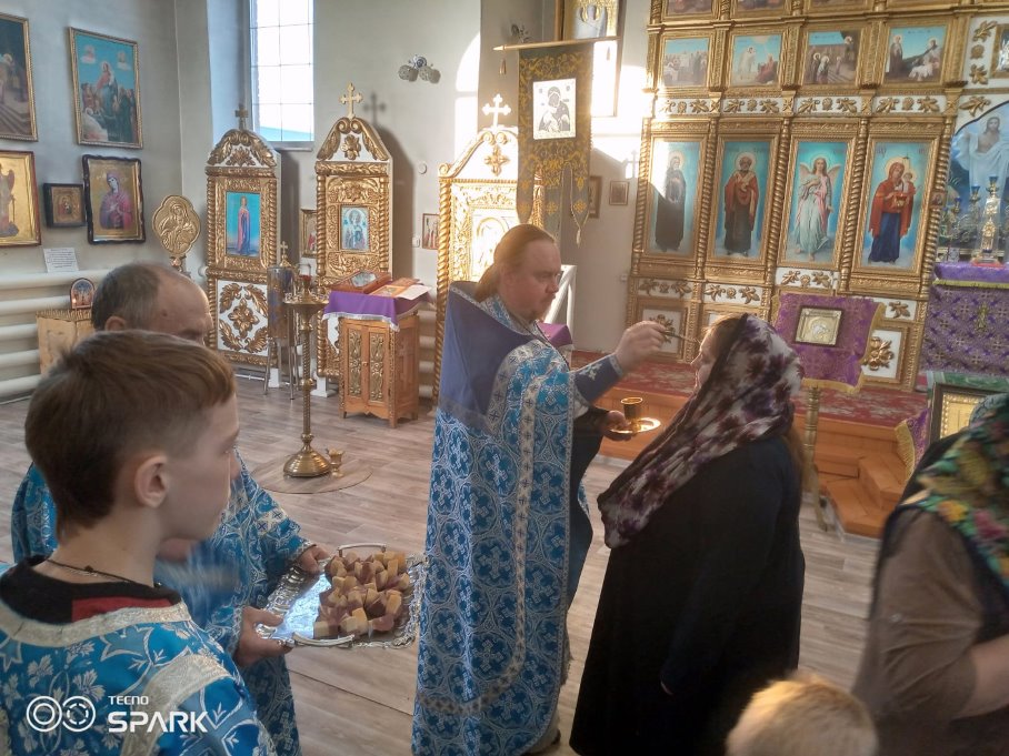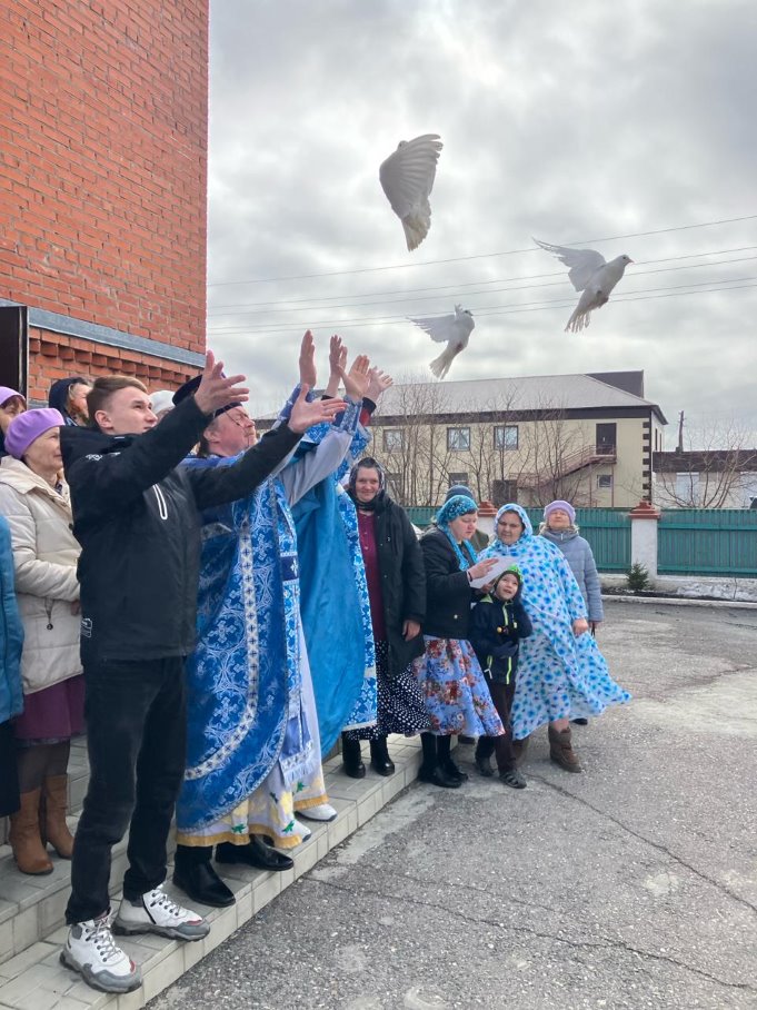 В этот день также празднуется всероссийский день беременных. Настоятель храма иерей Михаил Прут поздравил прихожан с праздником Благовещения Пресвятой Богородицы, напомнил о важности сохранения жизни детей, находящихся во время беременности в материнской утробе. После чего был прочитан покаянный канон о младенцах, в утробе материнской убиенных.