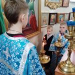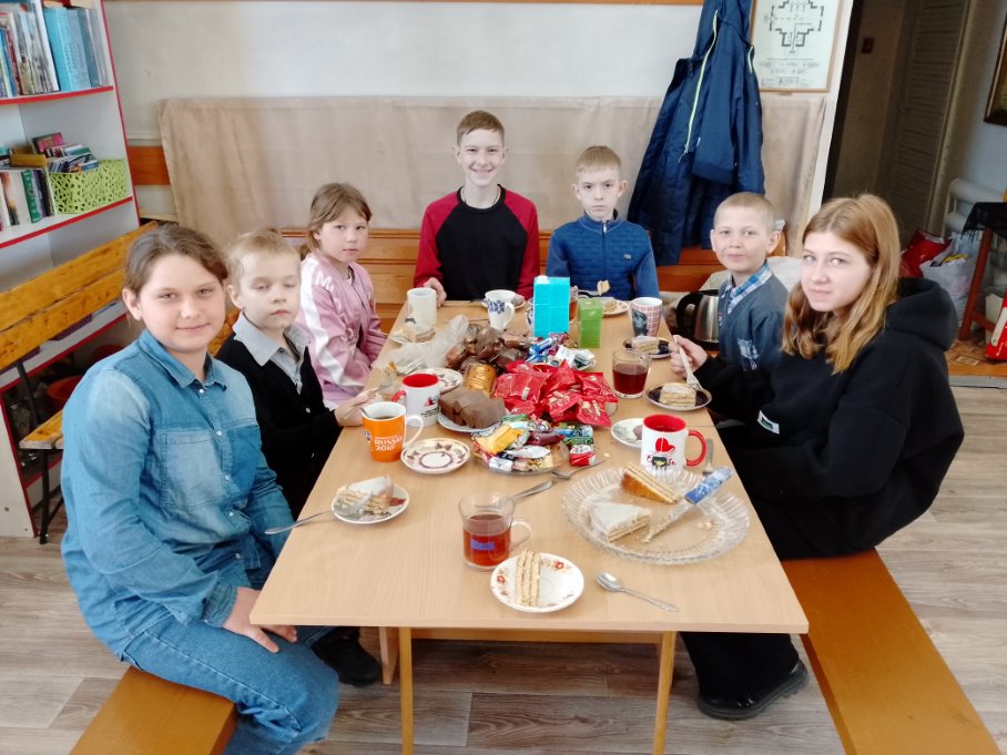 После богослужения на чаепитие собрались ученики воскресно-приходской школы.