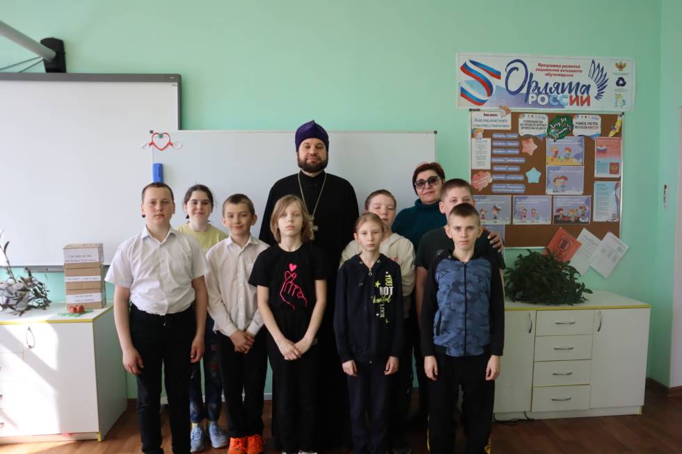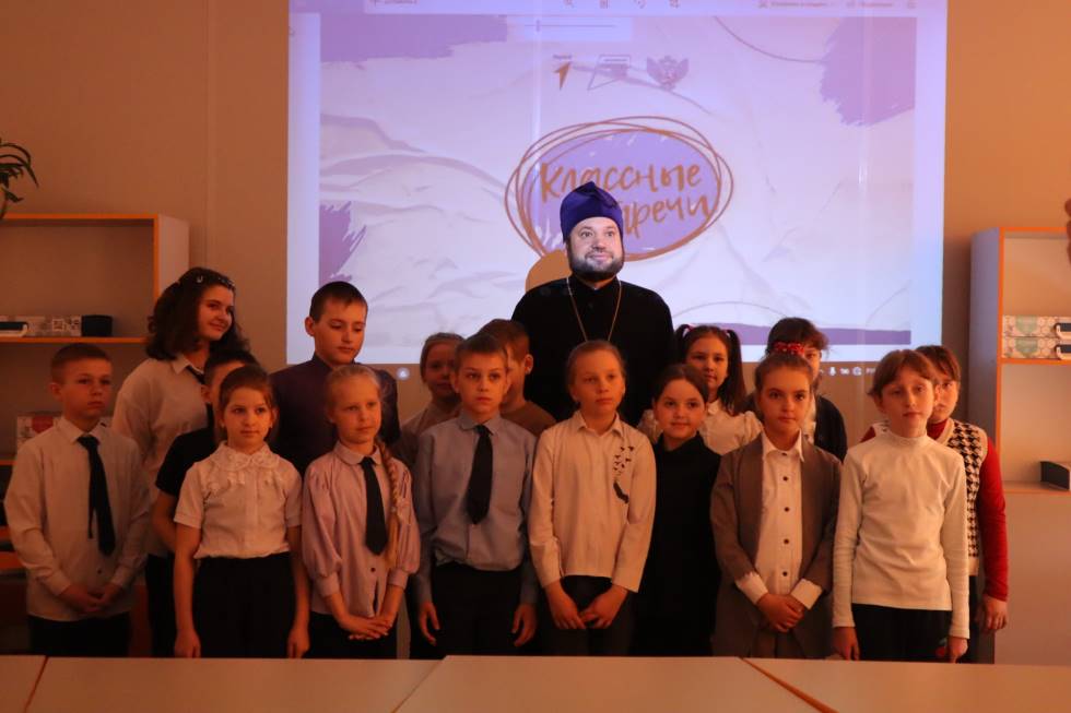 16 апреля/вторник. Иеромонах Мелхиседек (Свистелин), благочинный Центрального округа Карасукской епархии, посетил МБОУ СОШ № 148 Купинского района. Иеромонах Мелхиседек является выпускником этой школы, его пригласили по просьбе обучающихся школы. В школе батюшка принял участие в классном часе с обучающимися 4-х классов, где, отвечая на вопросы обучающихся, рассказал о том, как сам ранее обучался в этой школе, затем в духовной семинарии, как вернулся на свою малую родину в Купинский район и о своем пастырском служении на Купинской Земле. В завершении беседы было сделано общее фото.