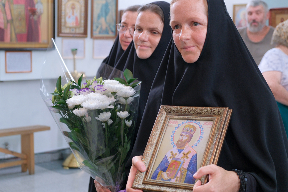 По окончании Литургии Его Высокопреосвященство Сергий, митрополит Барнаульский и Алтайский, поздравил Преосвященнейшего Владыку Филиппа с днем его тезоименитства.