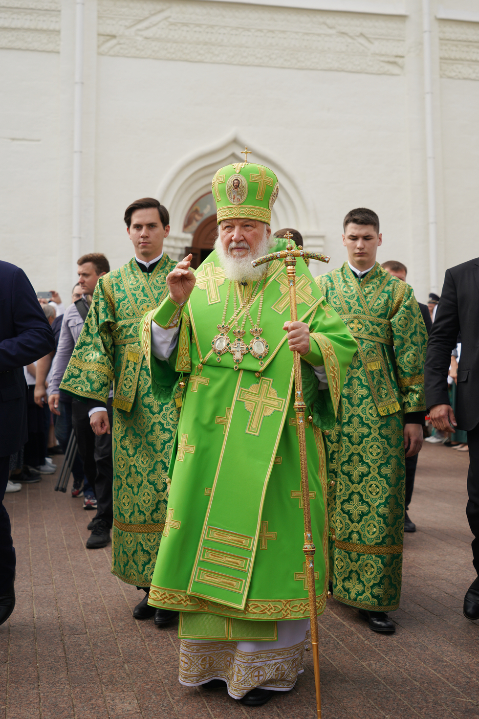 Его Святейшеству за Литургией сослужили митрополит Ташкентский и Узбекистанский Викентий, глава Среднеазиатского митрополичьего округа; митрополит Санкт-Петербургский и Ладожский Варсонофий; митрополит Крутицкий и Коломенский Павел, Патриарший наместник Московской митрополии; митрополит Минский и Заславский Вениамин, Патриарший экзарх всея Беларуси; митрополит Воскресенский Григорий, управляющий делами Московской Патриархии, первый викарий Патриарха Московского и всея Руси по г. Москве; митрополит Волоколамский Антоний, председатель Отдела внешних церковных связей; митрополит Наро-Фоминский Никандр, председатель Финансово-хозяйственного управления Московского Патриархата; митрополит Самарский и Новокуйбышевский Сергий; митрополит Казанский и Татарстанский Кирилл; митрополит Иваново-Вознесенский и Вичугский Иосиф; митрополит Балтийский и Светлогорский Серафим; митрополит Курганский и Белозерский Даниил; митрополит Каширский Феогност; митрополит Тамбовский и Рассказовский Феодосий; митрополит Нижегородский и Арзамасский Георгий; митрополит Рязанский и Михайловский Марк; митрополит Луганский и Алчевский Пантелеимон; митрополит Орловский и Болховский Тихон; митрополит Саранский и Мордовский Зиновий; митрополит Ханты-Мансийский и Сургутский Павел; митрополит Владивостокский и Приморский Владимир; митрополит Астраханский и Камызякский Никон; митрополит Смоленский и Дорогобужский Исидор; митрополит Волгоградский и Камышинский Феодор; митрополит Екатеринодарский и Кубанский Василий; eпископ Сергиево-Посадский и Дмитровский Кирилл, наместник Свято-Троицкой Сергиевой лавры, ректор Московской духовной академии; епископ Раменский Алексий, личный секретарь Святейшего Патриарха Кирилла; собор архиереев Русской Православной Церкви.