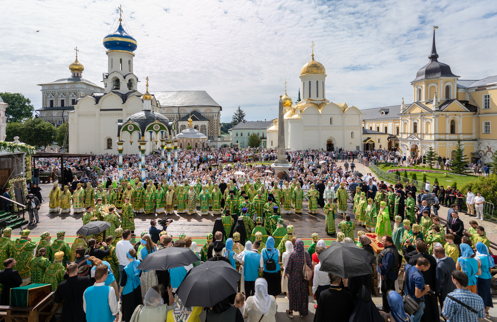Торжественное богослужение совершалось перед чтимой иконой преподобного Сергия Радонежского. Для совершения праздничных всенощного бдения и Божественной литургии на Соборной площади был устроен помост, а перед Успенским собором лавры — престол под сенью.