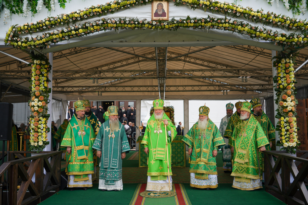 По окончании Литургии Святейший Владыка, члены Священного Синода Русской Православной Церкви и иерархи, прибывшие на праздник в лавру, совершили молебен Игумену земли Русской.