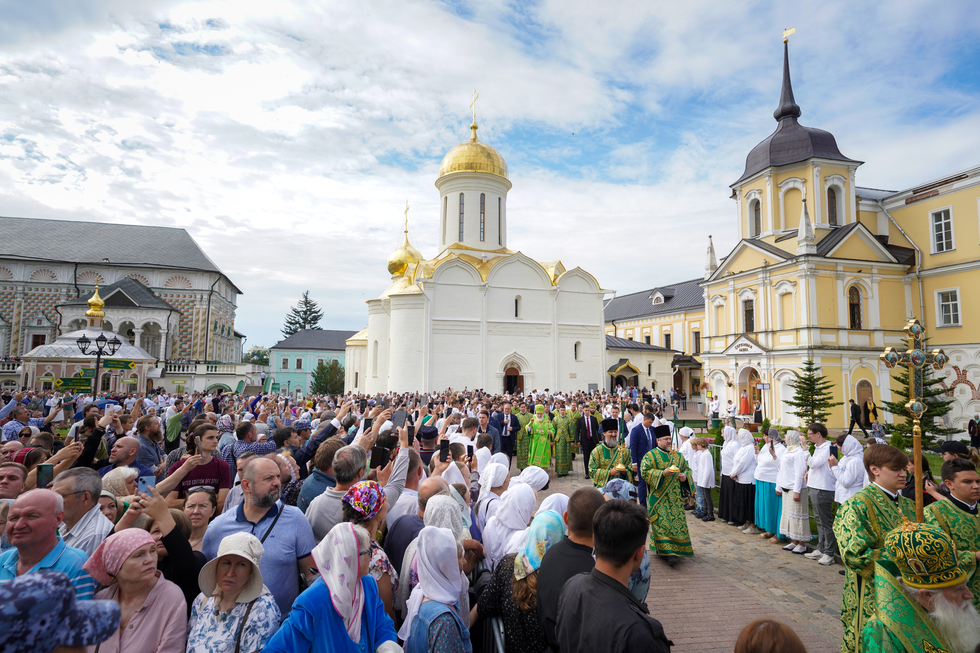 За богослужением молились настоятельницы ставропигиальных монастырей, монашествующие, участники крестного хода «От Государя к Преподобному», многочисленные паломники.