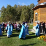 По окончании Литургии Владыка с клиром и паствой совершил крестный ход вокруг храма. У каждой из 4-х его сторон священнослужители окропляли молящихся святой водой, а у алтаря архипастырь зачитал Евангельское начало.