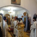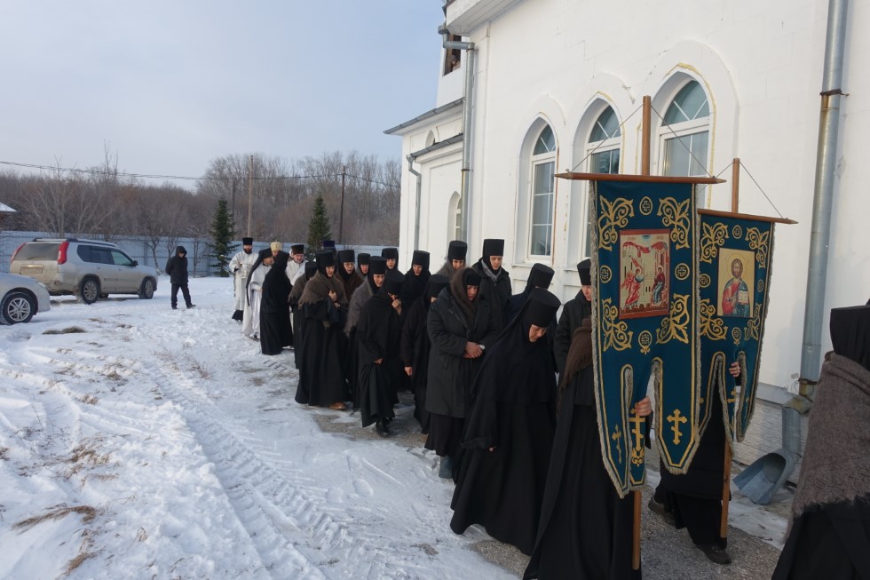 За Литургией молились игумения Мария (Серопян), настоятельница монастыря, и сестры святой обители. По сугубой ектении епископ Филипп вознес молитву о Святой Руси. После отпуста Литургии Владыка возглавил крестный ход вокруг храма.
