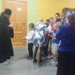 Затем два архиерея поблагодарили детей и воспитателей за теплую встречу, пожелали детям крепкого здоровья и Божьего благословения, а также не забывать о Боге и обращаться к Нему в любых жизненных испытаниях, учиться благодарить Бога за все, что случается с ними в жизни, чтобы получить духовную пользу и изменить к лучшему свою жизнь, чтобы свет Рождественской звезды не покидал их души, а тепло святочных дней согревало их и они никогда не ощущали одиночества, а воспитателям пожелали Божией помощи в выполнении их миссии. Владыки окропили всех святой водой, вместе с детьми пропели молитву «Отче наш» и подарили им на память об этом светлом празднике иконки и раздали сладкие рождественские подарки.