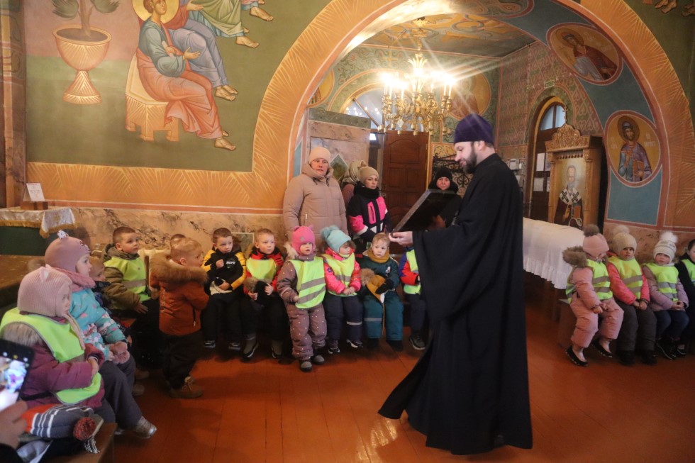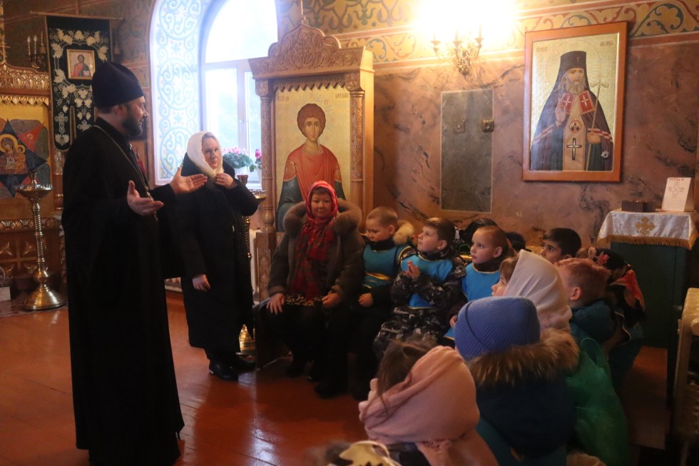 16 января/четверг. В храме во имя святого апостола и евангелиста Луки г. Купино состоялась беседа с воспитанниками МКДОУ детского сада «Солнышко» г. Купино, которую провел иеромонах Мелхиседек, настоятель храма, он рассказал воспитанникам детсада о празднике Богоявления и об истории храма во имя святого апостола и евангелиста Луки. По завершении беседы батюшка ответил на вопросы детей.