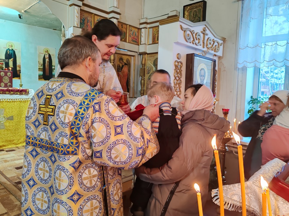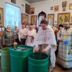 Прихожане поисповедовались и причастились Святых Христовых Таин. По окончании заамвонной молитвы был совершен чин великого освящения воды.