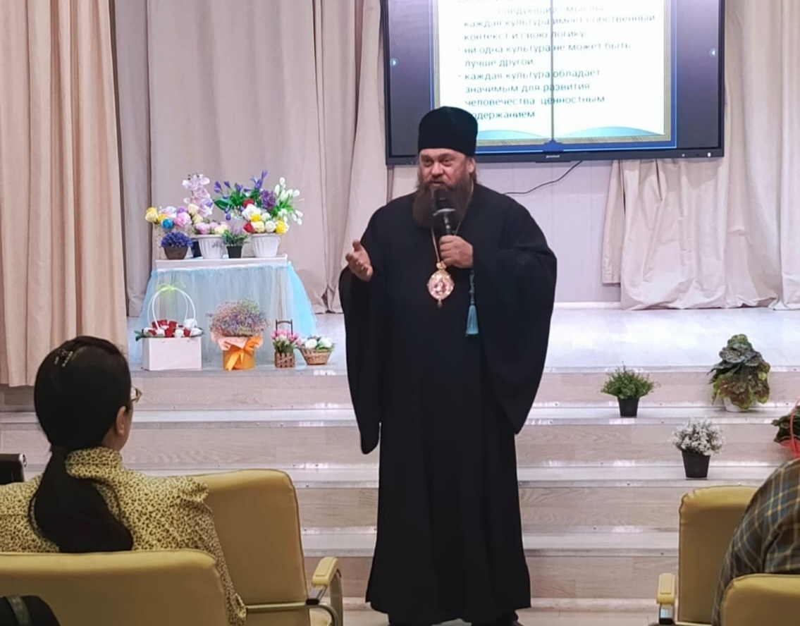 26 февраля епископ Филипп и иерей Антоний Баранов посетили Технический лицей 176 г. Карасука, на котором обсуждался вопрос по выбору модуля ОПК в рамках курса ОРКСЭ.