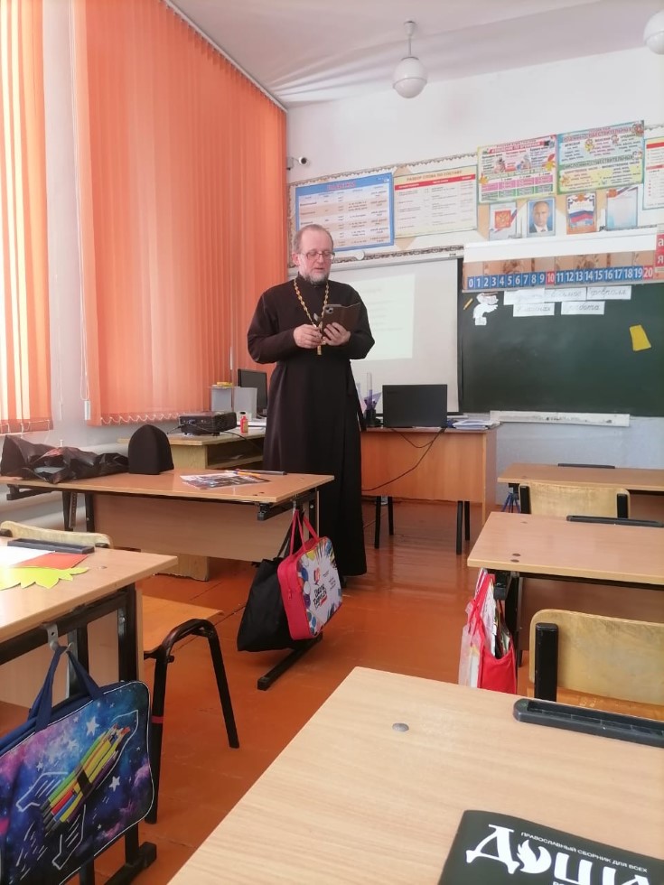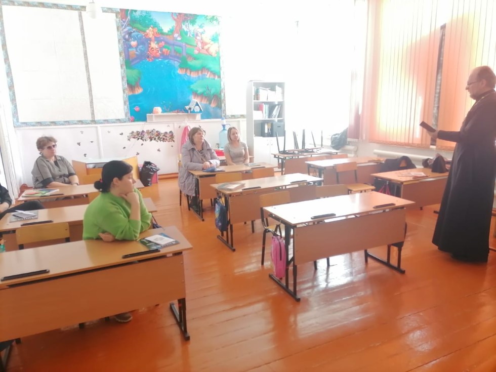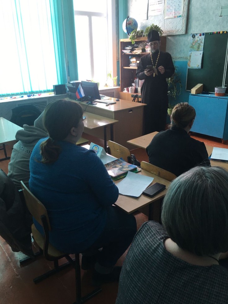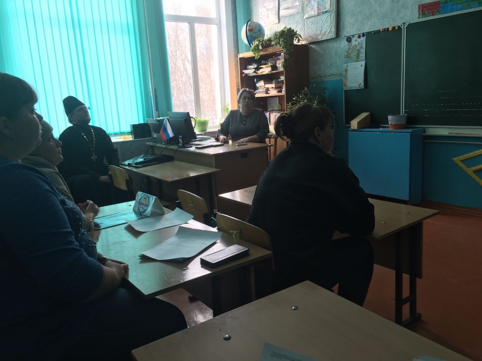 28 февраля настоятель храма во имя прп. Сергия Радонежского р. п. Краснозерское протоиерей Евгений Зверев посетил родительские собрание по выбору модуля «Основы православной культуры» в МКОУ Мохнатологовской СОШ и МКОУ Петропавловской ООШ, где рассказал о церковном вероучении, традициях и патриотизме.