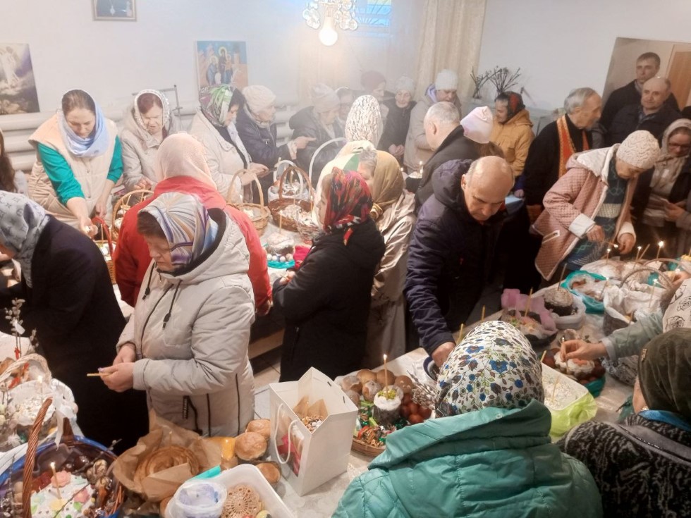 В завершение праздничного богослужения батюшка освятил артос, он будет всю неделю «участвовать» в крестных ходах, его разрежут и раздадут верующим в субботу, как большую святыню. После праздничного богослужения состоялась совместная трапеза. Были гости из других приходов района. Они рассказали о своих приходах много интересного.
