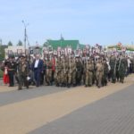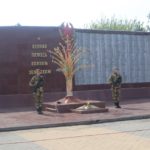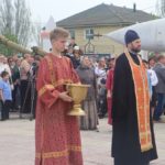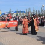 У мемориала Героям фронта и тыла была совершена лития по усопшим воинам. Иеромонах Мелхиседек поздравил всех собравшихся с праздником.