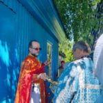 После Литургии и водосвятного молебна был совершен крестный ход с пасхальными песнопениями и благословением на храм сей, «на весь сию», на люди и благословенную землю, в которую отцы-основатели принесли веру православную.