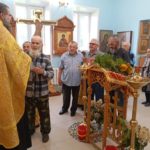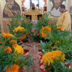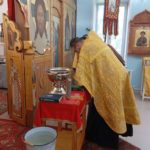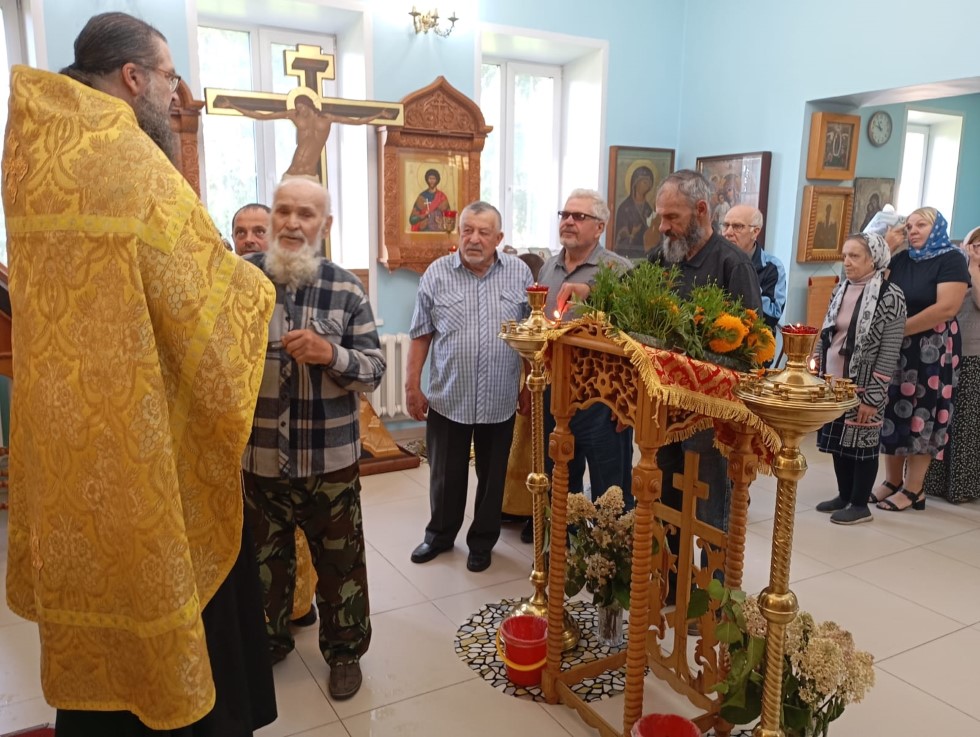 14 августа 2025 г., в день празднования Происхождения (изнесения) Честных Древ Креста Господня, в храме во имя преподобного Сергия Радонежского с. Довольного протоиерей Андрей Гусев отслужил водосвятный молебен и благословил прихожан на Успенский пост.