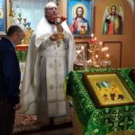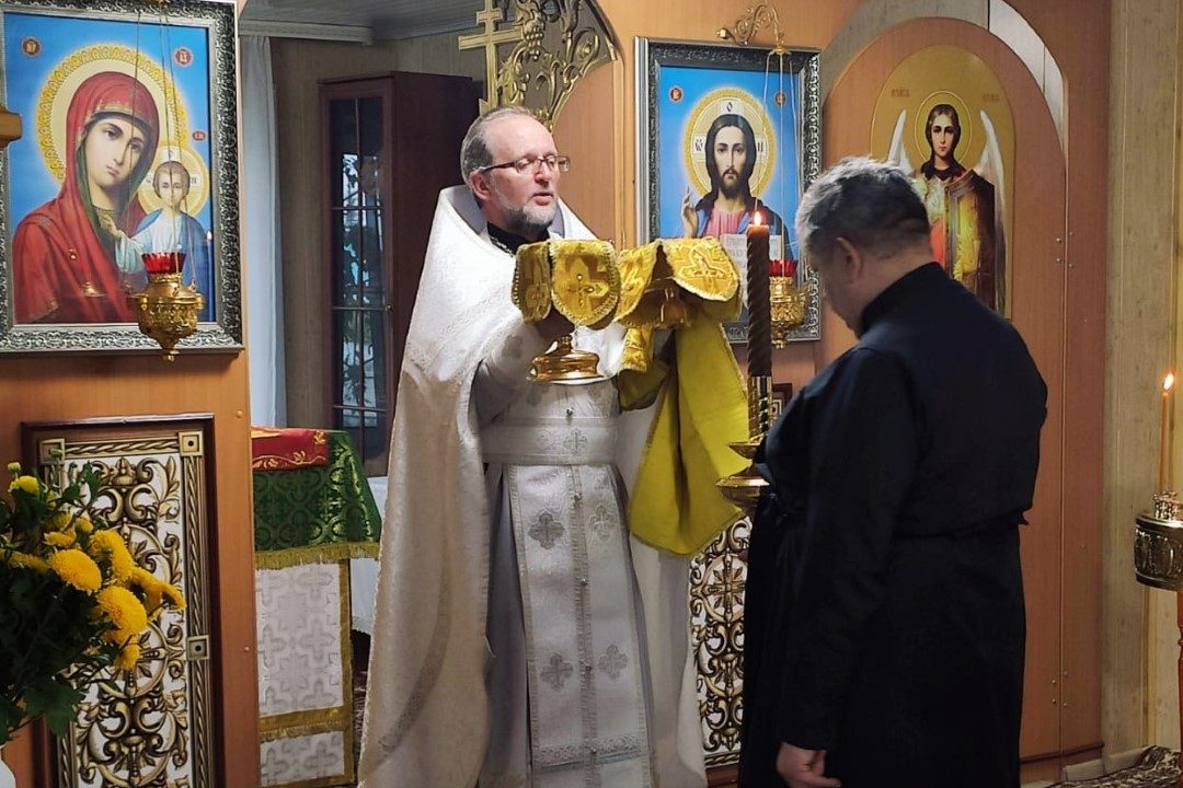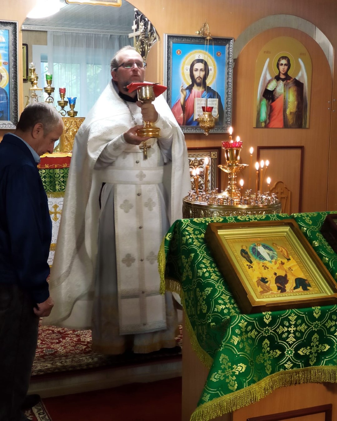 Настоятель храма протоиерей Евгений Зверев за Божественной литургией молился о мире, о новом храме и о преображении людей к лучшему.