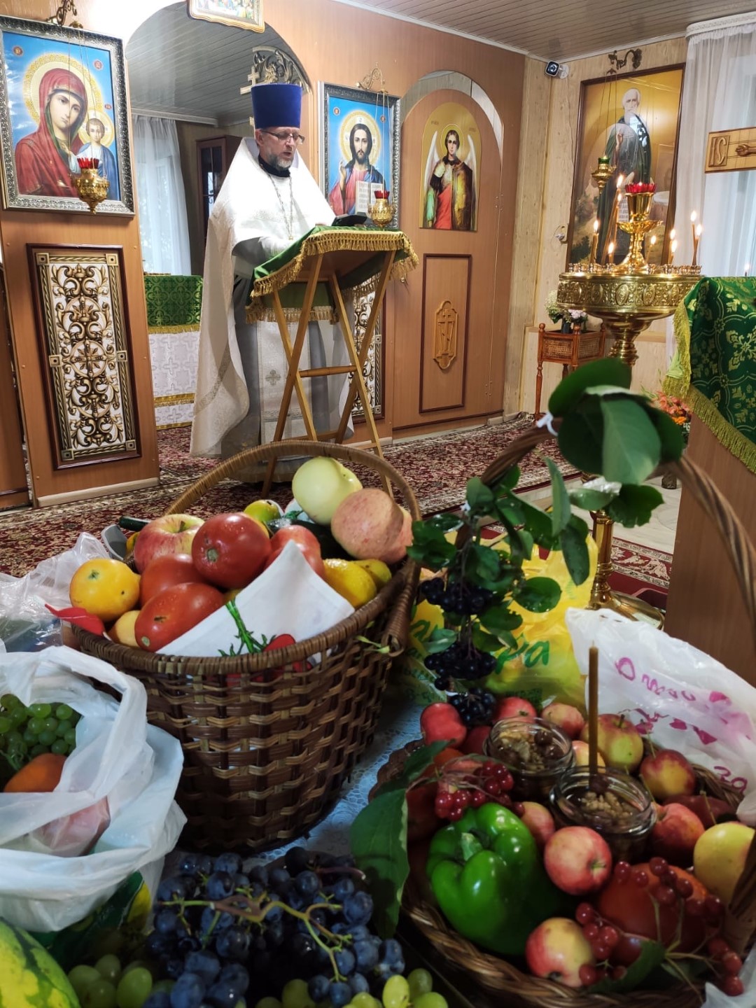 Верующие храма во имя прп. Сергия Радонежского р.п. Краснозерское встретили праздник Преображения Господня и Яблочный Спас в обновленной душевной атмосфере.