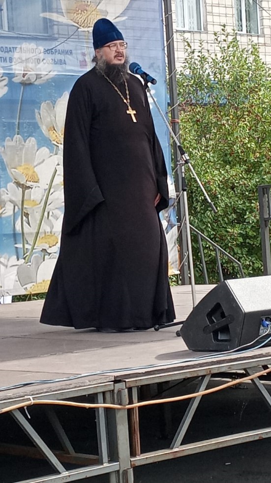 Священник со сцены обратился к пришедшим с назидательным словом о любви к своей Родине, о сохранении духовных традиций и о ценности православной веры. Сотрудники Доволенской центральной библиотеки и Доволенского историко-краеведческого музея организовали чтение стихов о Родине в микрофон, артисты ДСКО исполнили патриотические песни о России.