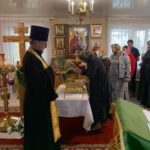 В 14.00 в храме начался молебен с акафистом святителю Иннокентию пред его святыми мощами, который совершил благочинный Центрального округа Карасукской епархии иеромонах Мелхиседек (Свистелин) в сослужении протоиерея Евгения Зверева. Иеромонах Мелхиседек рассказал о святителе и его жизненном подвиге и помазал всех освященным маслом.