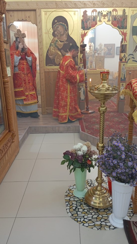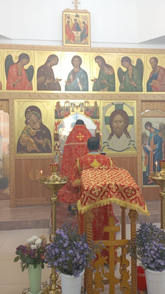 27 сентября, в день Воздвижения Честного и Животворящего Креста Господня, в храме во имя преподобного Сергия Радонежского с. Довольного состоялась Божественная литургия. Накануне прихожане украсили цветами храм и Крест Господень.