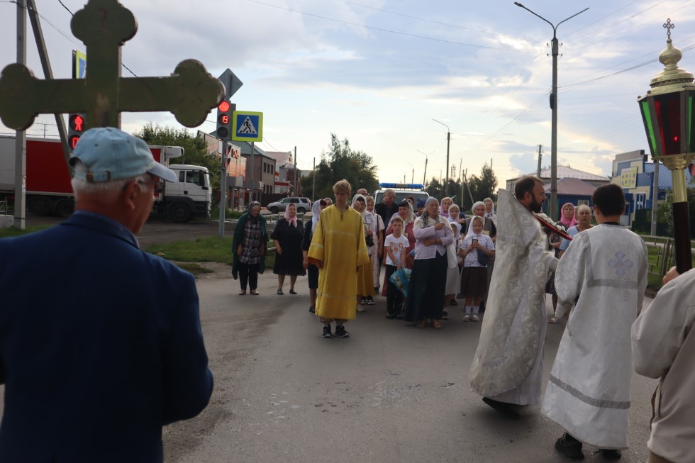 14 августа, в день Происхождения (изнесения) Честных Древ Животворящего Креста Господня и исторический День Крещения Руси, в Преображенском храме города Купино иеромонах Мелхиседек (Свистелин), благочинный Центрального округа Карасукской епархии, совершил праздничное всенощное бдение.