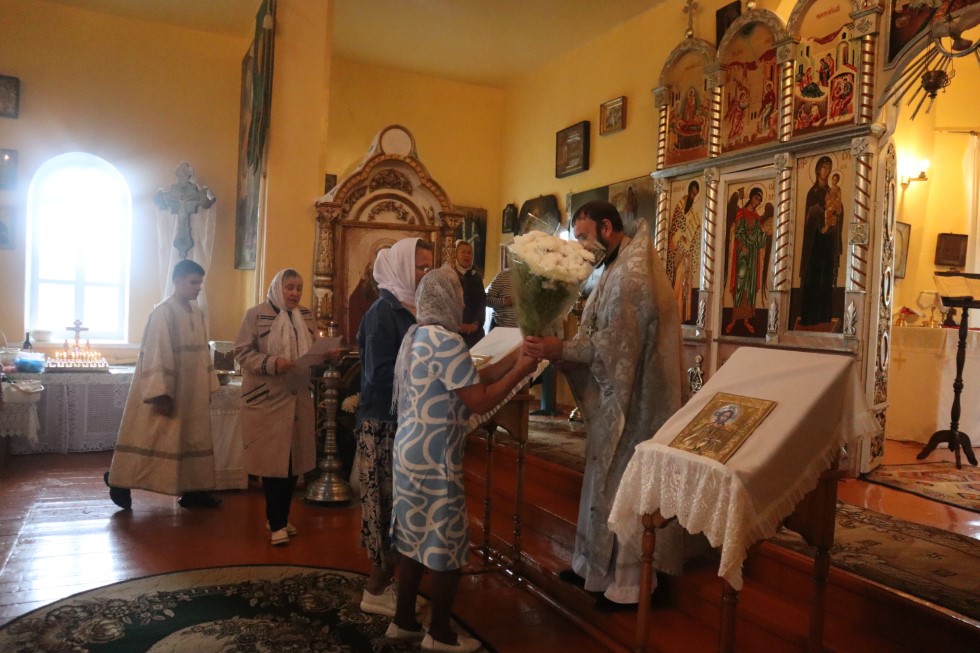 По окончании Литургии иеромонах Мелхиседек поздравил общину с праздником Преображения Господня, рассказал об истории общины и поблагодарил всех благодетелей, прихожан за труды по содержанию храма. Прихожане поздравили настоятеля храма, преподнесли ему букет белых роз и пропели многолетие. Затем вся община собралась на праздничную трапезу, специально приготовленную во дворе храма.