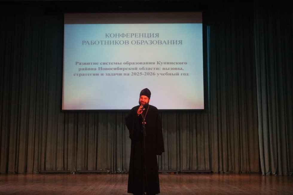 29 августа иеромонах Мелхиседек (Свистелин), благочинный Центрального округа Карасукской епархии, принял участие в Августовской конференции работников образования на тему: «Развитие системы образования Купинского района Новосибирской области: вызовы, стратегии и задачи на 2025–2026 учебный год», которая прошла в районном Дворце Культуры г. Купино.
