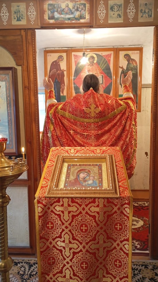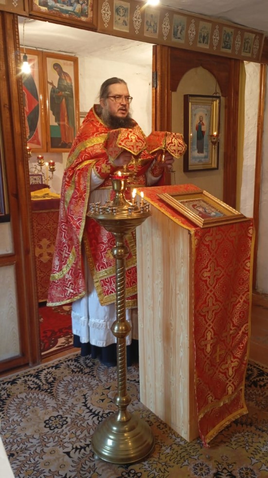 9 октября 2025 г., в день памяти святого апостола и евангелиста Иоанна Богослова, протоиерей Андрей Гусев совершил Божественную литургию в храме в честь Казанской иконы Божией Матери с. Волчанки Доволенского района.