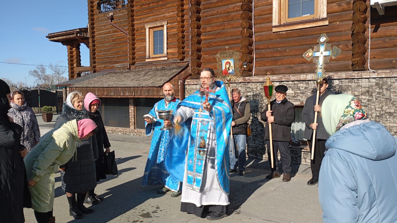 и пение молящиеся прошли крестным ходом вокруг храма. Священник произнес проповедь, призывая всех как можно чаще обращаться к Божией Матери, взирая на ее жизнь, стремиться к Богу, к Церкви и укреплять свою веру.