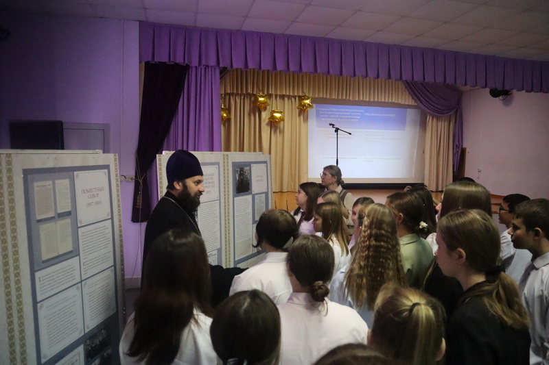 17 октября/пятница. Всероссийская передвижная выставка «Кто ны разлучит от любве Божия» прибыла в г. Купино. В актовом зале МБОУ СОШ №105 Купинского района состоялось мероприятие, посвященное памяти святого Патриарха Тихона. В мероприятии приняли участие обучающиеся 7-х -10-х классов школ Купинского района: МБОУ СОШ №105, МБОУ СОШ №148, МБОУ лицей 2 и МБОУ СОШ №80 имени В.П. Кузнецова.