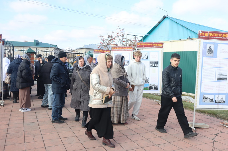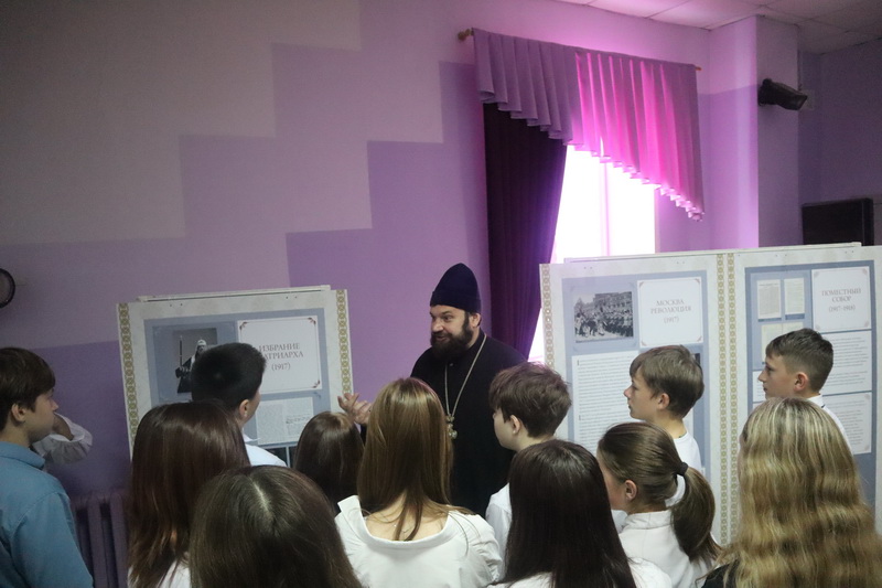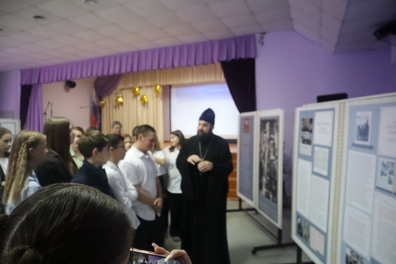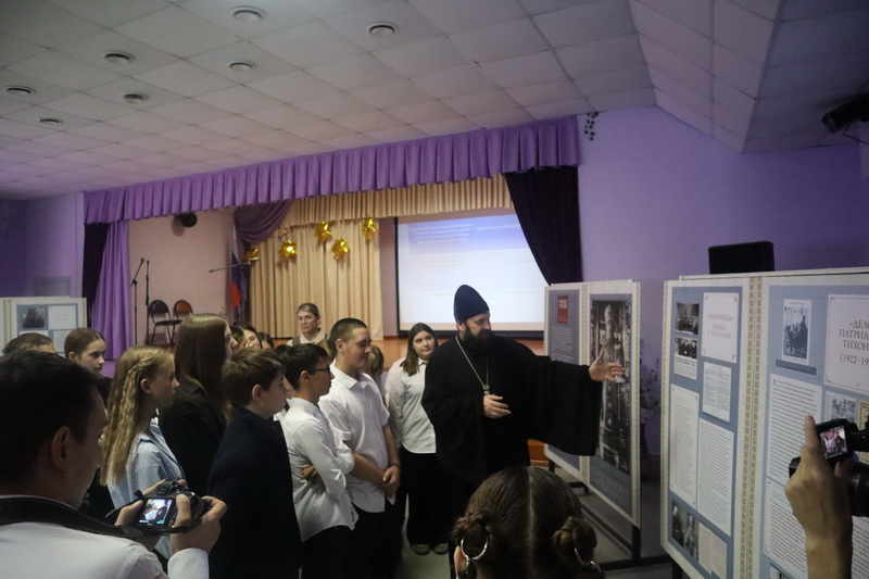 По завершении фильма иеромонах Мелхиседек (Свистелин), секретарь Карасукского епархиального управления и руководитель отдела религиозного образования и катехизации, передал участникам мероприятия благословение от Высокопреосвященного Митрополита Новосибирского и Бердского Никодима, временно управляющего Карасукской епархией, рассказал о служении Патриарха Тихона и ответил на интересующие вопросы аудитории. В завершение мероприятия была проведена экскурсия для обучающихся школ по экспонатам выставки; для обучающихся каждой из школ экскурсия была проведена отдельно, т. к. число обучающихся превысило 200 человек.
