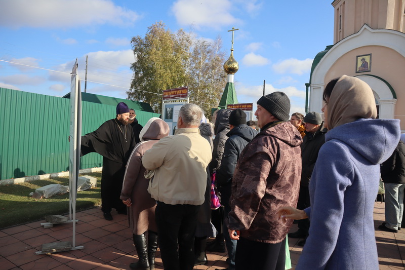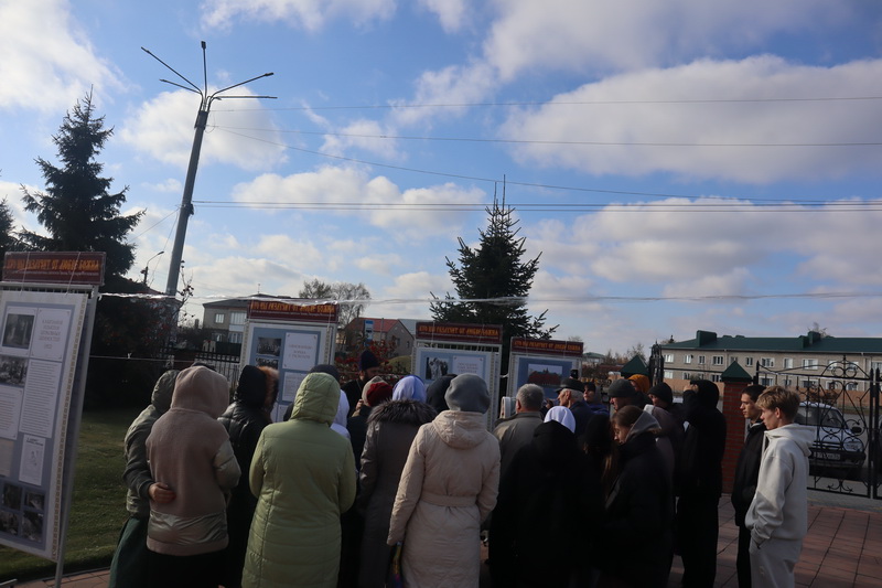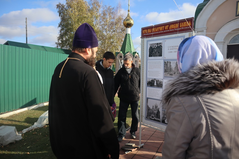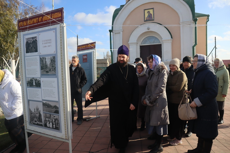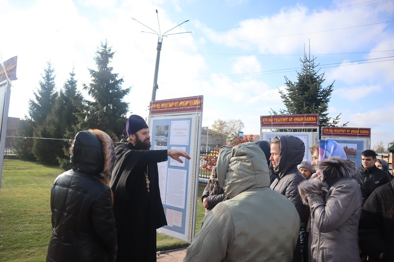Затем выставка была перемещена в храм во имя св. апостола Луки г. Купино, где в воскресный день по завершении Божественной литургии иеромонах Мелхиседек провел экскурсию по материалам выставки, которая экспонировалась на территории храма, разместившись на всей его площадке. Среди экскурсантов было много молодежи.