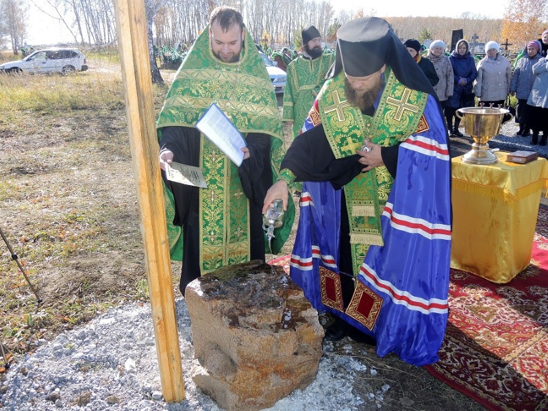 После обеда Его Преосвященство епископ Филипп и иеромонах Мелхиседек прибыли в Купино, где на местном кладбище состоялось освящение места и закладного камня под часовню во имя прп. Сергия Радонежского.