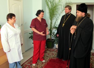 Галина Ивановна Слюсарева — главный врач больницы, с теплотой приняла высоких гостей. Владыка посетил часовню во имя Святого великомученика Пантелеимона, прошелся по кабинетам больницы, пообщался с медперсоналом и, конечно же, преподал всем свое архиерейское благословение!