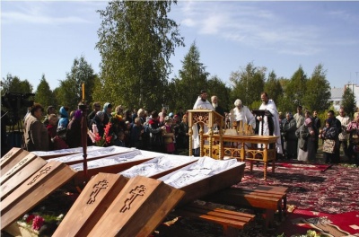Благодаря вмешательству Владыки это стало возможным и 16 сентября 2007 года в центральном парке райцентра Довольное состоялось торжественное перезахоронение невинно убиенных.