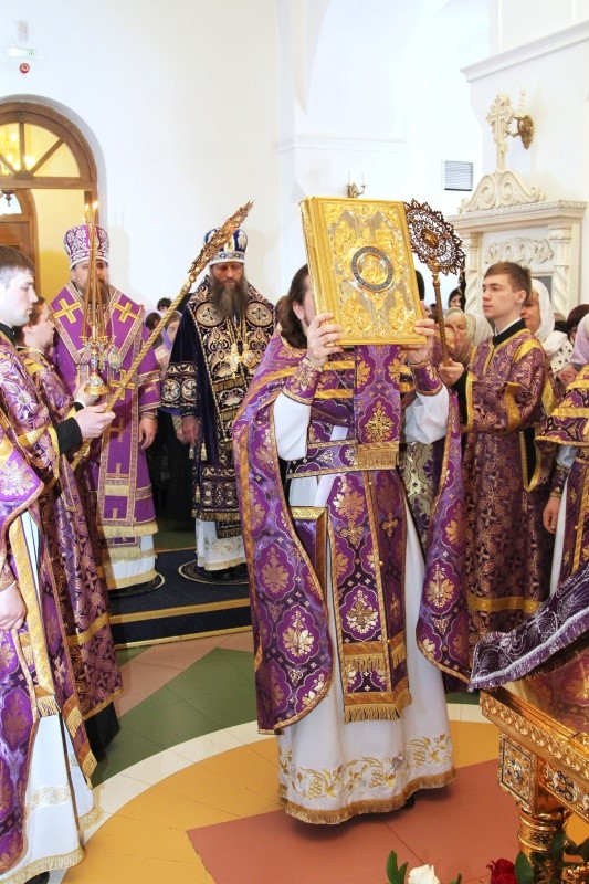 г. Салехард, 30.03.2014 г. В неделю 4-ю Великого поста и день памяти преподобного Иоанна Лествичника в Петропавловском храме совершили Божественную литургию два епископа. Епископ Николай Салехардский и Ново-Уренгойский и епископ Артемий Петропавловский и Камчатский, посетивший Салехардскую епархию с братским визитом.