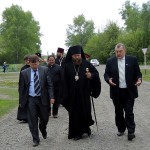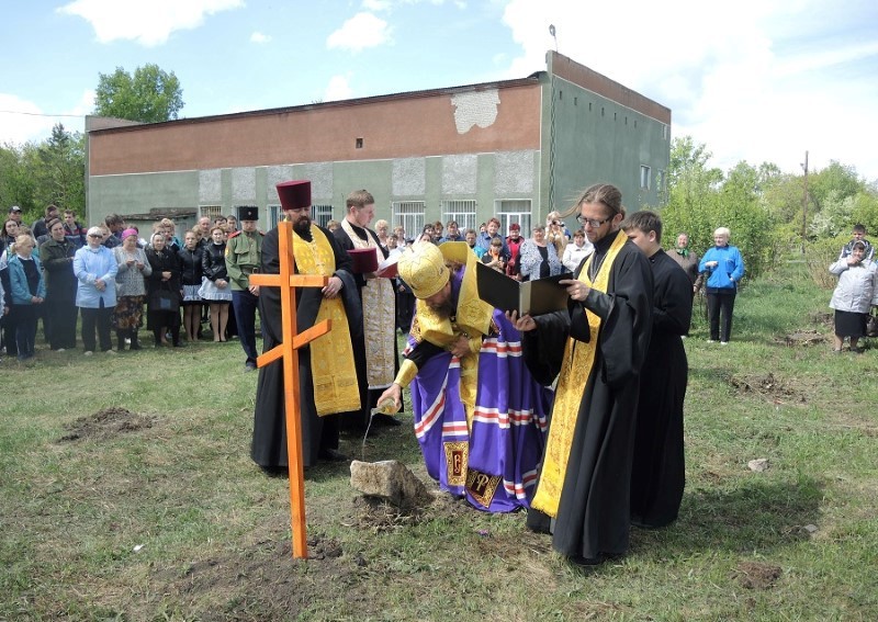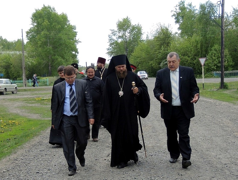 Затем Владыка встретился с главой Здвинского района Колотовым Михаилом Ивановичем и вместе с ним посетил село Цветники, где состоялся чин освящение места, закладного камня и креста на месте строительства часовни во имя св. благоверного князя Александра Невского.