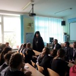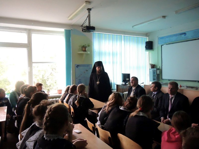 После чего Владыка с духовенством посетил местный приют для детей, а также в школе села Цветники состоялась его встреча с учащимися, на которой Владыка поздравил всех с днем памяти св. ап. Иоанна Богослова и окропил всех святой водой.