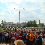 Со словами поздравлений к жителям обратились почётные гости праздника: заместитель главы администрации района Сергей Анатольевич Геращенко, председатель Совета Ветеранов Ольга Егоровна Микишева, директор библиотеки Татьяна Викторовна Бернякович выступила как поэтесса, прочитала собственное стихотворение, посвящённое братьям-просветителям. В заключение слово предоставили руководителю епархиального отдела образования и просвещения, настоятеля храма во имя святого апостола и евангелиста Луки иеромонаху Мелхиседеку (Свистелину), который так же поздравил всех с праздником и рассказал о значении просветительской деятельности святых равноапостольных Мефодия и Кирилла.