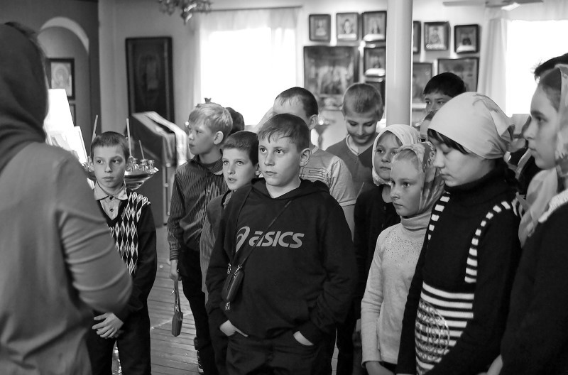 Дети приехали на автобусе из своего далекого села посетить наши храмы: во имя прп. Сергия Радонежского и во имя вмч. и целителя Пантелеимона. Для них была организована познавательная встреча, провели которую руководитель воскресной школы Ксения Борисовна Лебедева и смотритель храма во имя вмч. и целителя Пантелеимона Юлия Витальевна Николова.