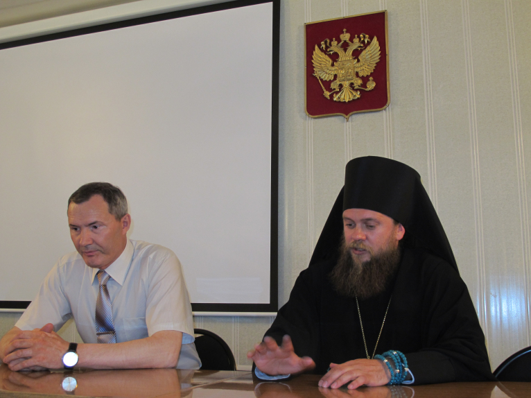 В 11:00 ч. Преосвященный Владыка Филипп встретился с сотрудниками ОВД Краснозерского района. Владыка рассказал о создании Карасукской епархии и поделился планами работы по Краснозёрскому району.