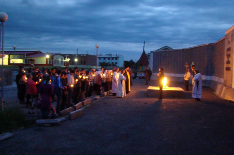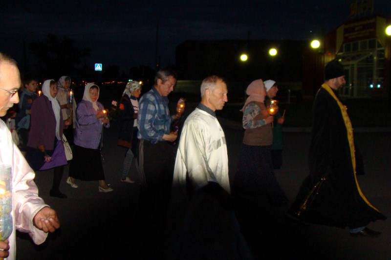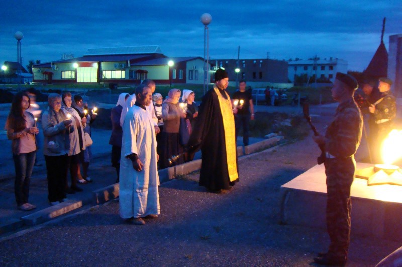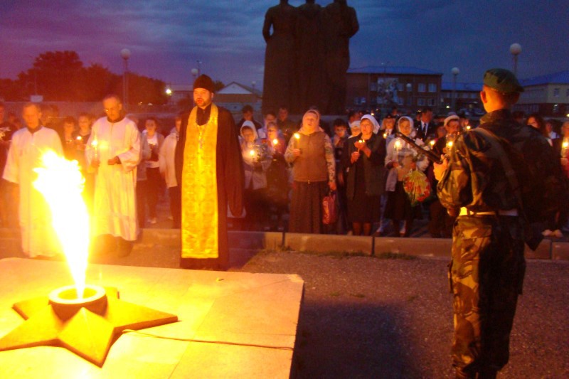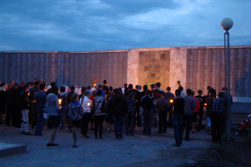 22 июня/воскресенье. Приходом храма во имя святого апостола и евангелиста Луки г. Купино совместно с Молодежным центром Купинского района проведена акция «Свеча памяти», посвященная 73-летию со дня начала Великой Отечественной войны. В 4.00 по местному времени был совершен крестный ход от храма во имя святого апостола и евангелиста Луки г. Купино до мемориала Героям фронта и тыла.