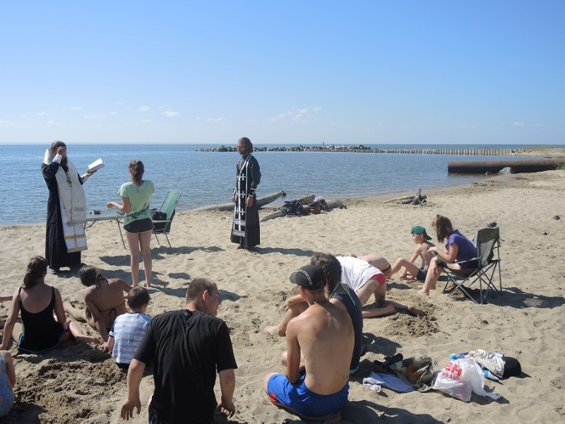 Рано утром епископ Филипп и иерей Сергий Шишов с детьми из православного детского лагеря во имя Архангела Михаила выехали на берег Обского моря.