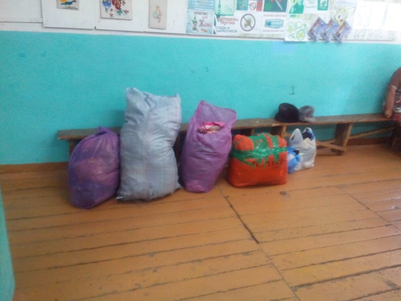 Также иерей Сергий привёз с собой в село 200 кг вещей, как абсолютно новых, переданных людям благочестивыми грузинскими предпринимателями из гипермаркета одежды «Эврика», так и немного б/у, собранных волонтёрами г. Карасука.