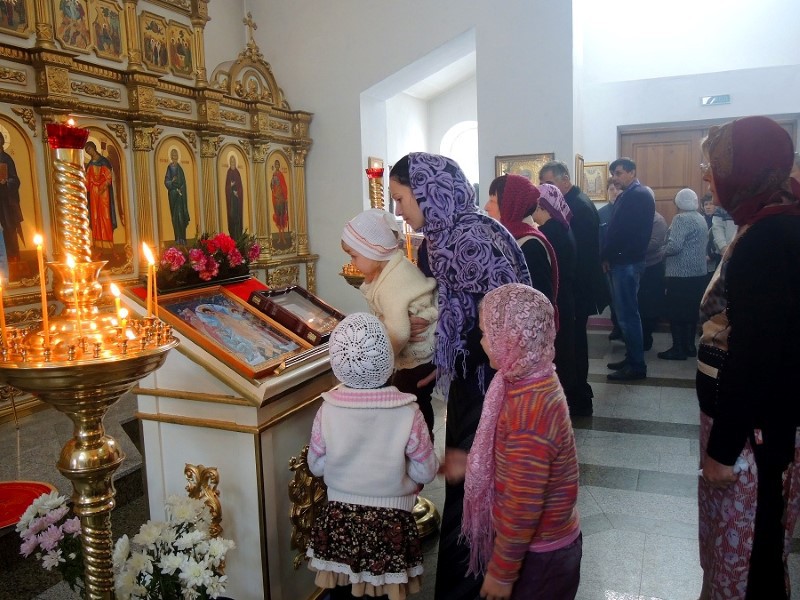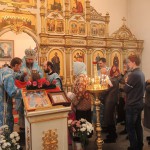 В приветственном слове по окончании Литургии Владыка поздравил прихожан собора с днем св. великомученицы Екатерины и напомнил, что жизнь и страдания св. великомученицы дают нам всем пример истинной христианской жизни: перенесение скорбей и страданий ради Христа, ради Царства Небесного.