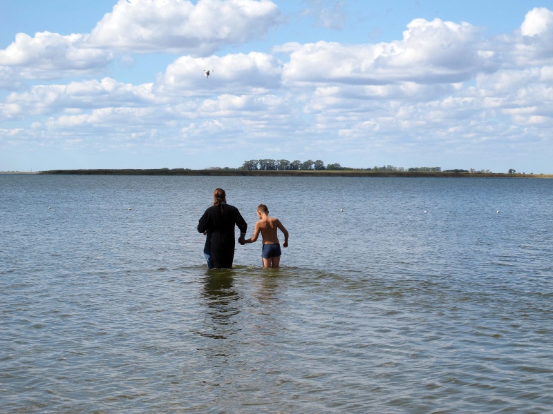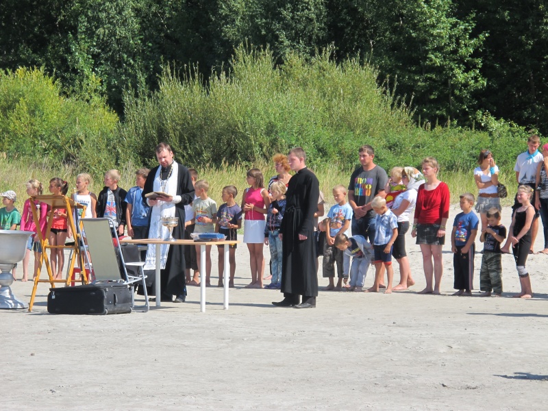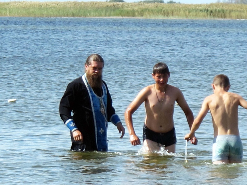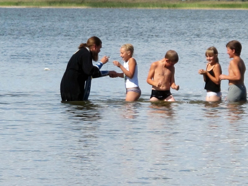 Священнослужителям привезли облачение и всё необходимое для совершения таинства. Благочинный освятил воду, Владыка Филипп вошел в озеро, а все крещаемые по одному подходили и принимали таинство Крещение. Всего крестившихся в этот день было 43 человека, включая сотрудников лагеря, поваров, детей и их родителей. Все получили в подарок крестики и иконочки.