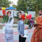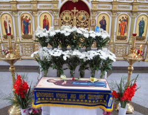 Многие прихожане принесли в собор букеты цветов. Храм был весь в цветах.