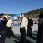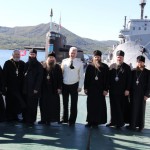 Они встретились с командующим Краснознаменными подводными силами ТОФ контр-адмиралом Н. А. Евменовым. После встречи гостей провели с экскурсией по территории военно-морской базы:побывали на борту одной из российских субмарин. Подводными силами Тихоокеанского Флота надежно охраняются северо-восточные рубежи нашей Родины.